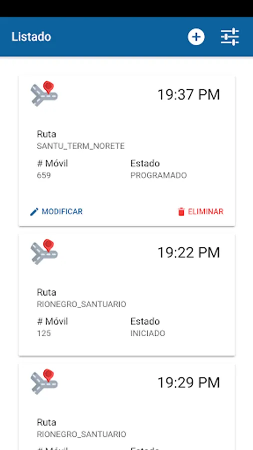 With this application you can schedule dispatches specifying: Time, route, vehicle and driver