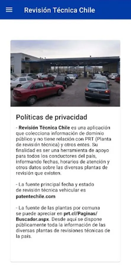 Technical Review Chile is an application that allows you to check the status, date and technical review plants in Chile. The purpose of this support tool is to inform drivers and vehicle owners in Chile (of all types) everything they need before attending the inspection plants in the country.