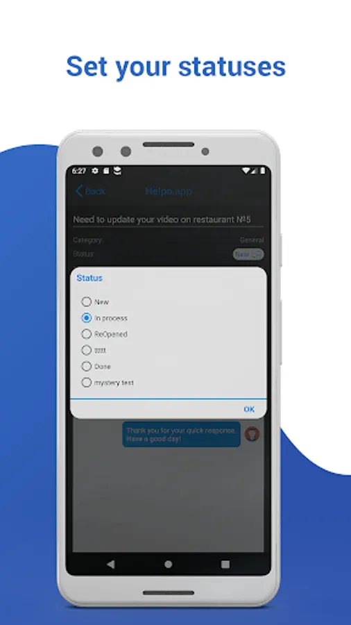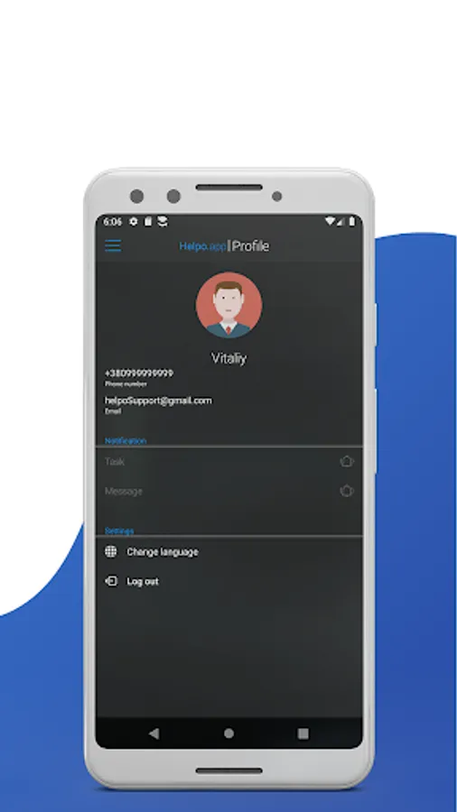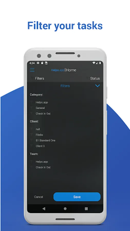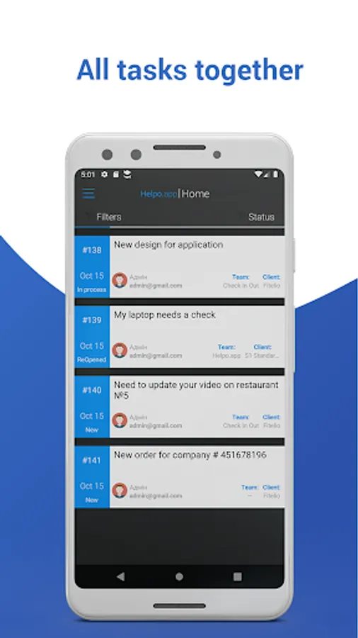 The Helpo application allows users to create tasks and tasks, allows them to set statuses and assign tasks to teams or groups.