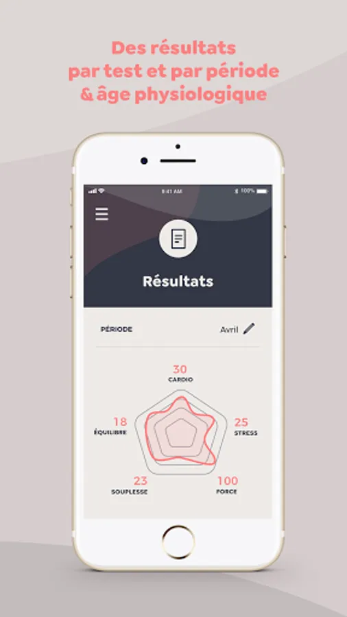 Start your physical activity on the right foot with first a Fitness Check that will be offered to assess your physical condition. On the program, 5 physiological tests that determine your state at the time: Stress - Cardio - Strength - Flexibility and Balance tests.