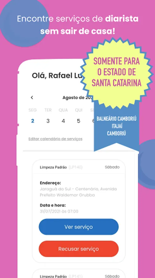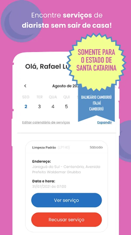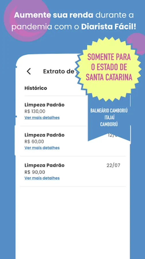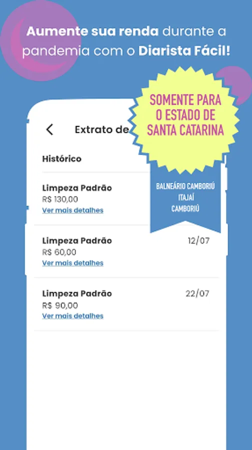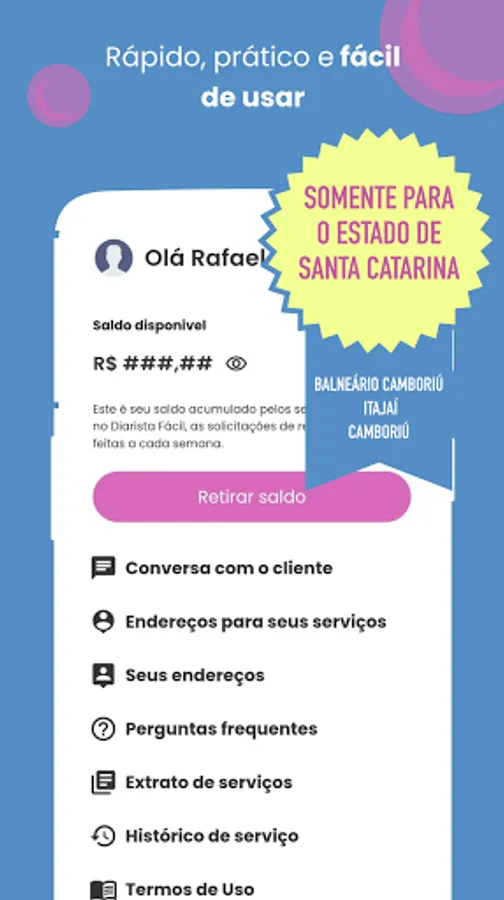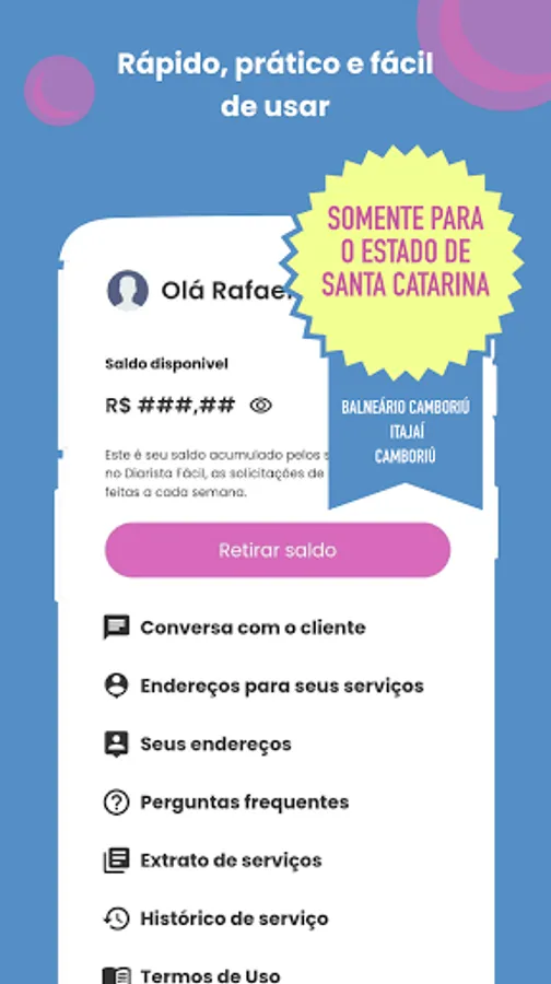 If you have questions or suggestions to further improve your experience at Diarista Fácil, please contact us by email at contato@diaristafacil.com or send a message via the in-app chat for support.