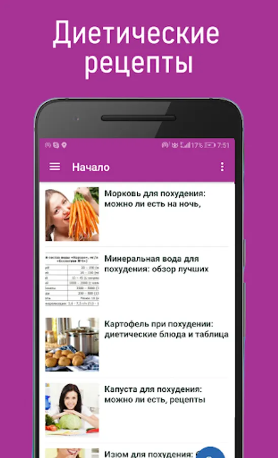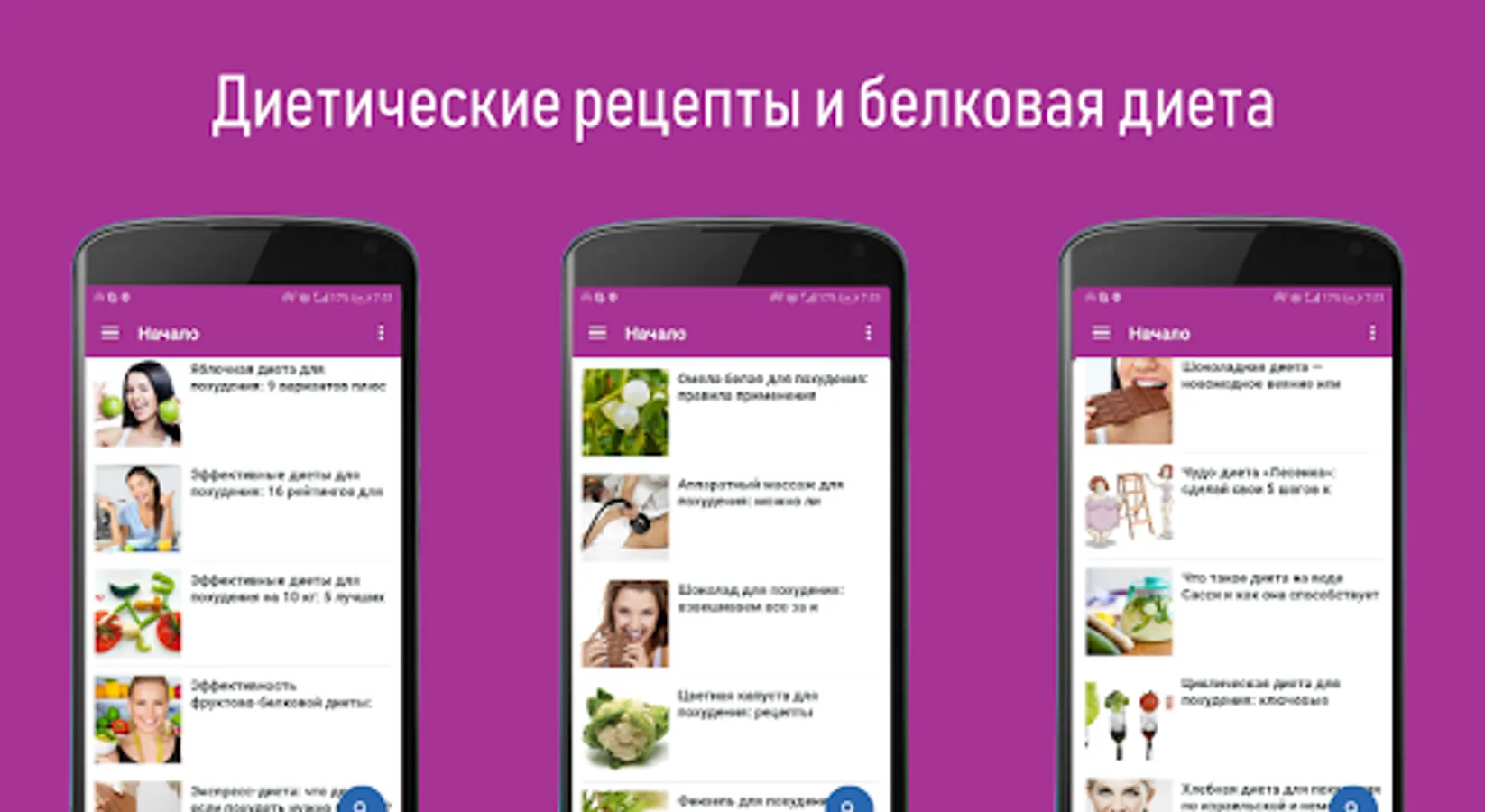 We have compiled a diet for weight loss and a list of products for proper nutrition. In the application you will find diets for every day or month.