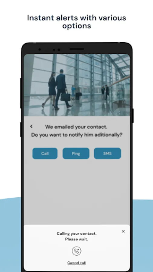 - A warm welcome: visitors are warmly welcomed 24/7 and can check in and out easily. The relevant employee within your company will be notified when a visitor has arrived.