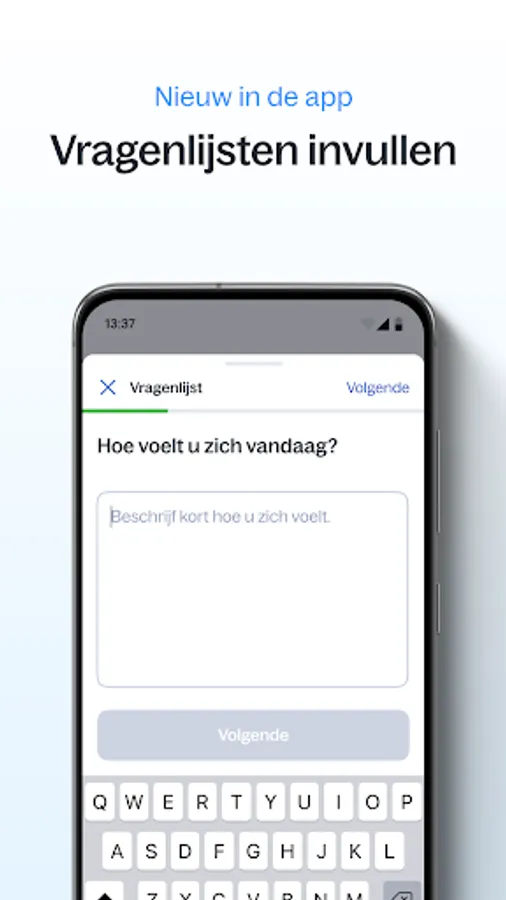 Complete questionnaires through the app. This way your healthcare provider knows how you are doing.