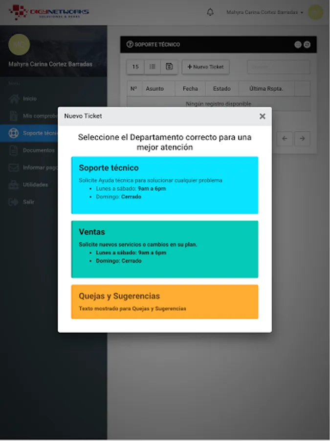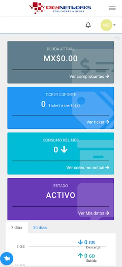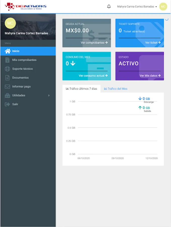 Here you can review your payment vouchers, download your invoices, report problems on the network, view your internet consumption, Open support ticket, among other functions.