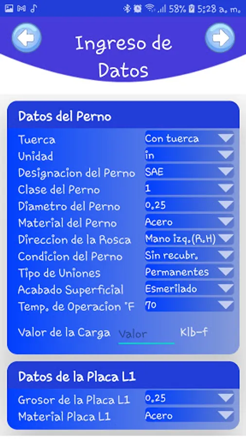 Bolt Design Application performs calculations