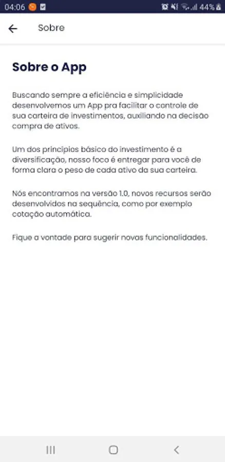 Always looking for efficiency and simplicity, we developed an App to facilitate the control of your investment portfolio, assisting in the decision to purchase assets.