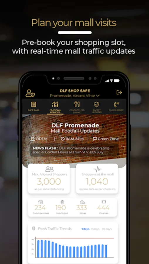 For familiar and best experience of shopping at DLF Malls, download the DLF Malls Lukout app for real time foot traffic, real time notifications on mall safety and cleanliness, booking of time slots and golden hours to visit our malls.