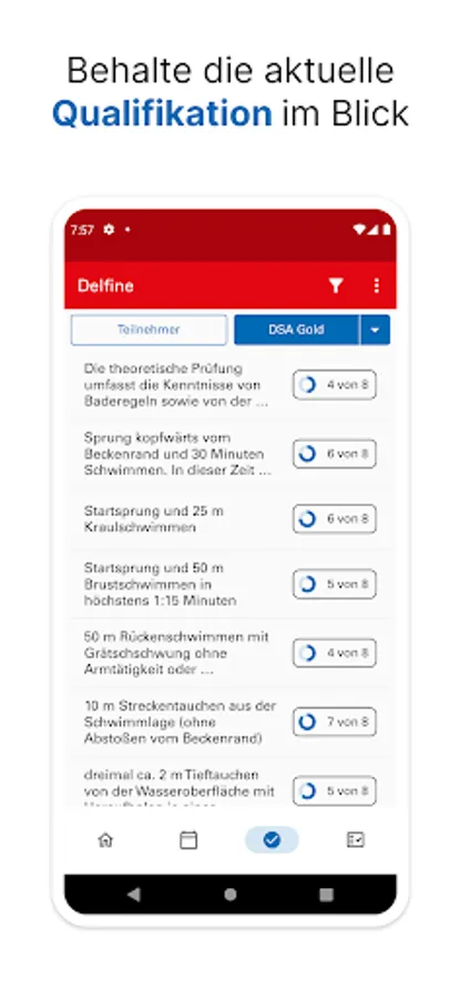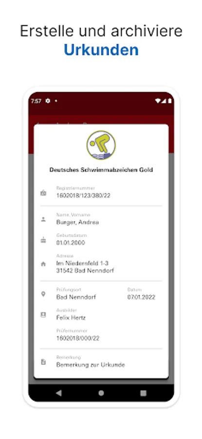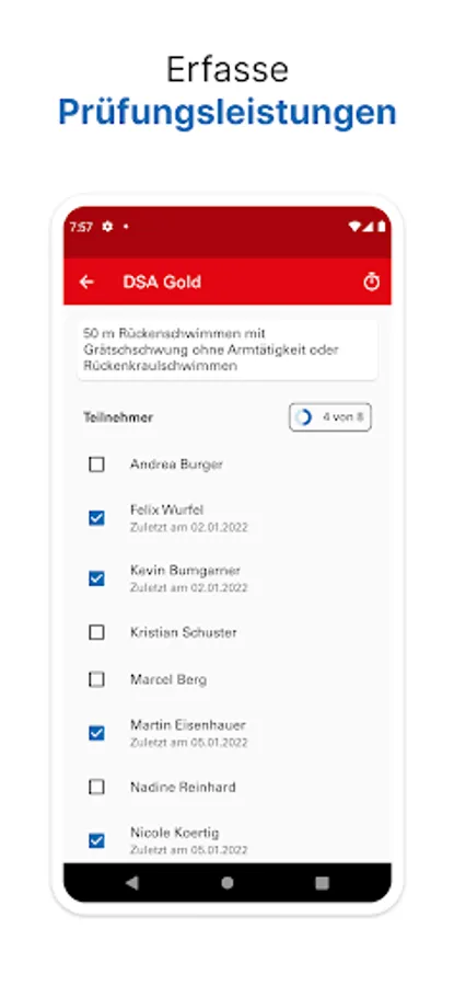 Scan membership cards or seminar tickets at the entrance control, keep an eye on the participants in your group, record examination performances for the qualifications of your group and create certificates for passed badges.