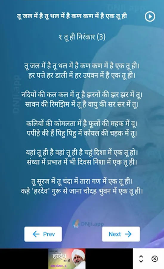 Nirankari DNJi App contains Sampuran Avtar Bani from sahanshah Baba Avtar singh ji and Sampuran Hardev Bani from our beloved Nirankari Baba Hardev Ji. Both are available in a easy way to access it daily.
