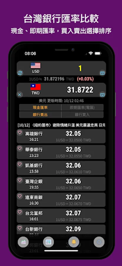 Taiwan Exchange Rate Converter (CurrencyEx) -- provides functions such as Taiwan bank exchange rate comparison, international average exchange rate historical changes, exchange rate calculation, etc.