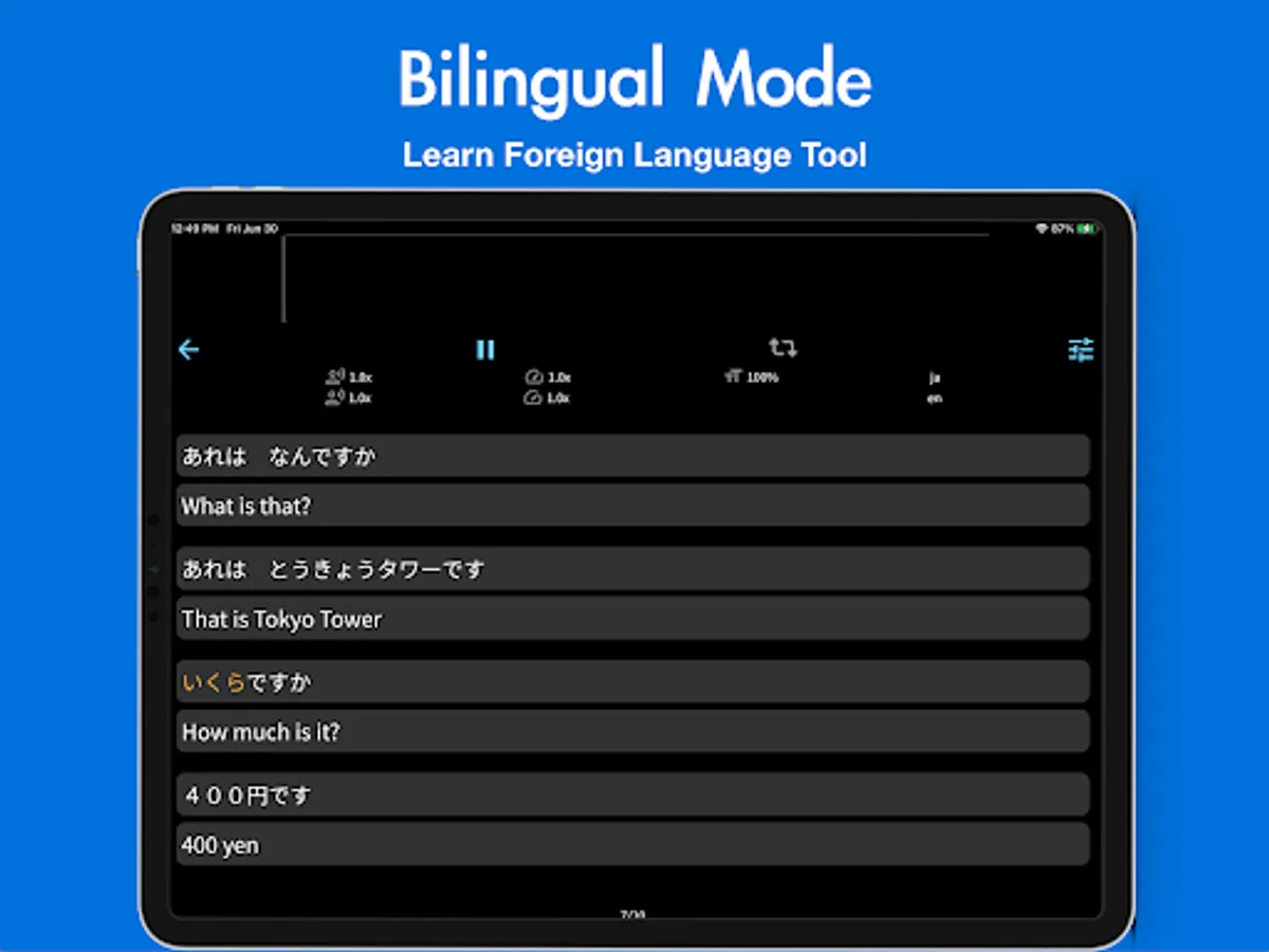 Bilingual mode: This mode is designed for bilingual texts, with each pair of phrases consisting of two lines. Text2Speech will read the text content of each language separately for each pair of phrases, making it more convenient for bilingual learning or translation. Just input the document containing the dual-language phrases into the application, and Text2Speech will read each pair of phrases in sequence, helping you better understand and learn both languages.