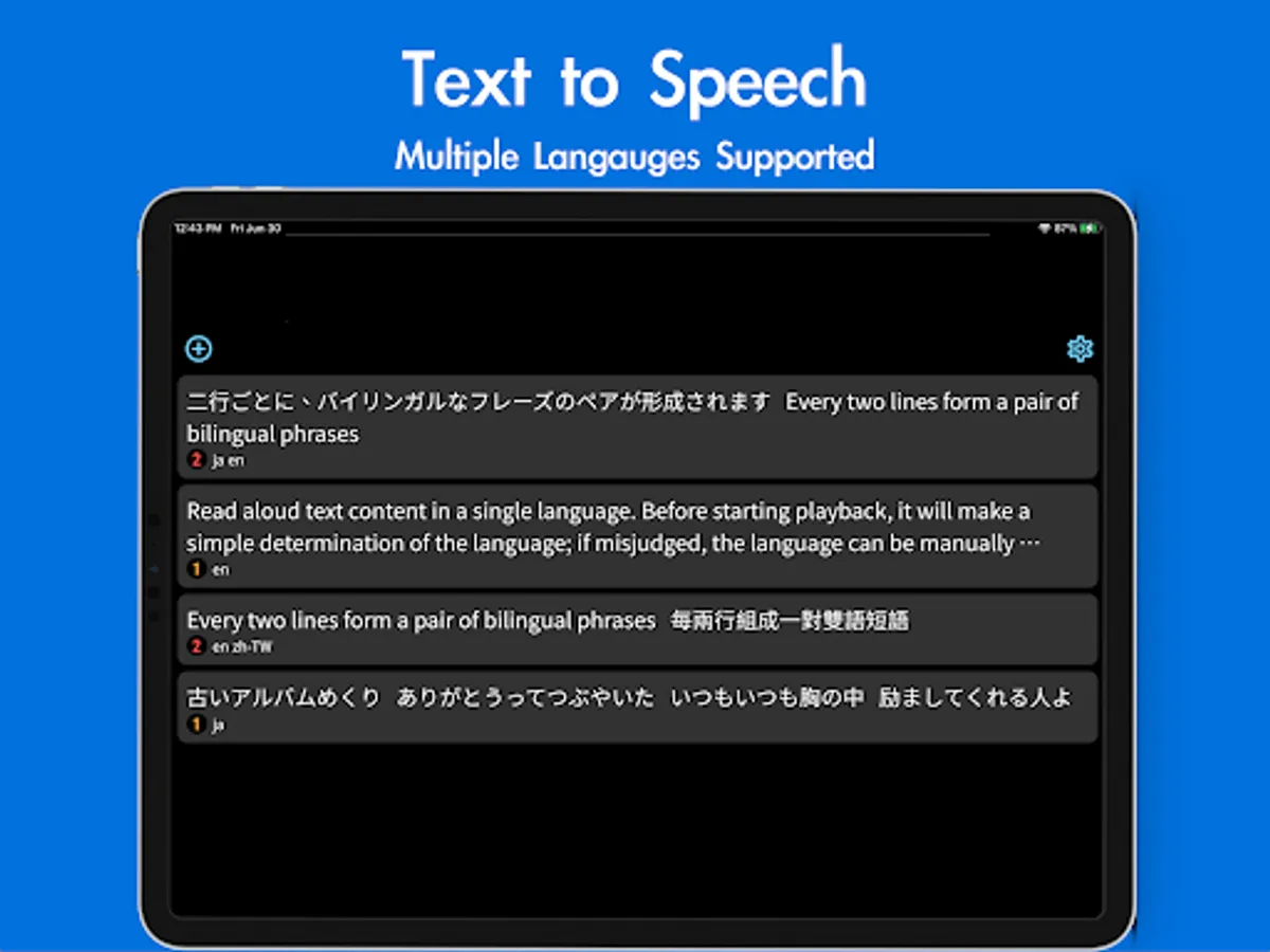 Text2Speech is an easy-to-use text-to-speech application that allows you to convert text content into natural and fluent speech. This application primarily provides two modes for monolingual text reading or bilingual document reading, depending on your needs.