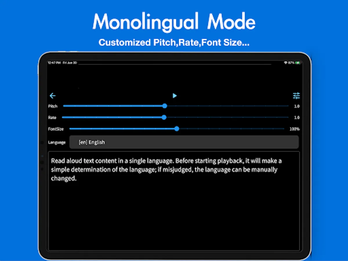 Monolingual mode: This mode is suitable for reading out single-language text content. Simply input the text you want to read into the application, and Text2Speech will automatically detect the language using advanced language recognition technology and read the text content in a smooth and natural voice. If the language detection is incorrect, you can manually change the language.