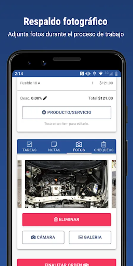 - Attach photographic backup (PHOTOS), from the camera or files in gallery.