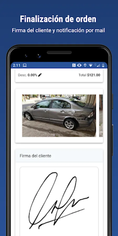 - Digital signature of the client at the close of the order.