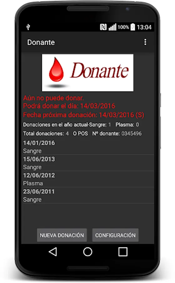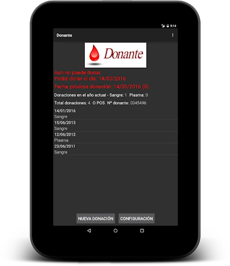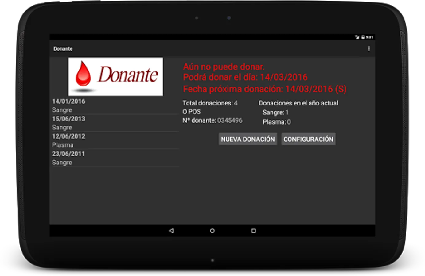 Giving is an application with which you do not need to re-make the donor card in your wallet. This application allows you to keep track of blood or plasma donations made and also will warn you if you can and go to donate or if not yet, it will show the date that you can do to your preference. Giving allows you to easily and check out all this information. With Donor, show solidarity becomes a little easier.