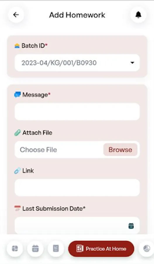 Homework – Creation of homework and communication at the click of a button. No need to write diaries for homework. Homework submission and checking for pending submissions can also be seen through the app.