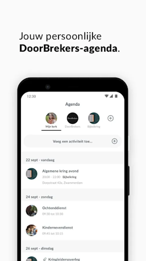 View the DoorBrekers agenda, but also the agenda for specific groups. Thanks to the smart group system you get a tailor-made agenda for you. Then link it to your own agenda and don't miss a thing!
