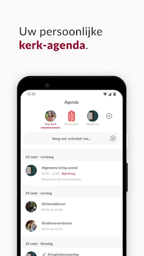 View the calendar for your entire community, but also for specific groups. Thanks to the smart group structure, each user has his own unique church calendar. Then link it to your own personal calendar and don't miss a thing!