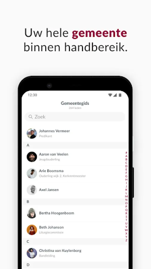 Does anyone still look up a telephone number in the telephone book? Hardly anyone! Thanks to the community guide feature, everyone within your congregation can be found. Send messages quickly, navigate to an address, or see what someone's role is in the Church? It becomes easy with the digital community guide.