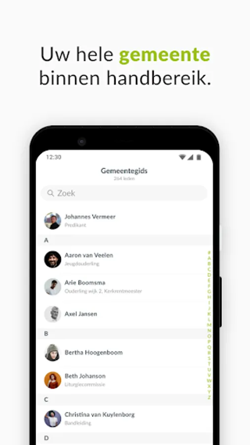 Who still looks up a telephone number in the telephone book these days? Hardly anyone! Thanks to the congregation guide feature, everyone within your congregation can be found. Sending messages quickly, navigating to an address, or seeing someone's role in the Church? The digital municipal guide makes it easy.