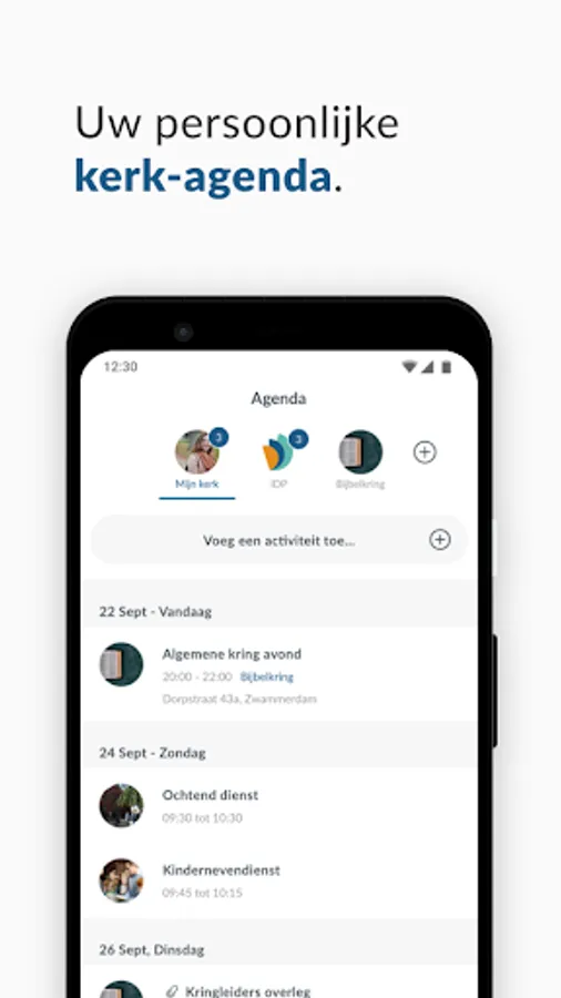 View the agenda for your entire organization, but also for specific groups. Thanks to the smart group system, you get a tailor-made agenda for you. Then link it to your own agenda and don't miss a thing!