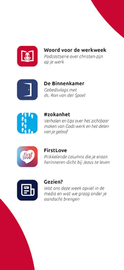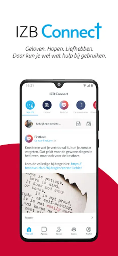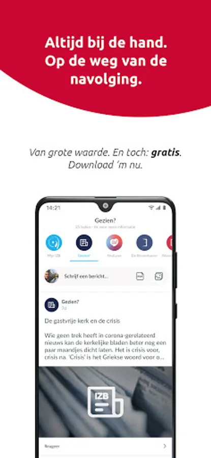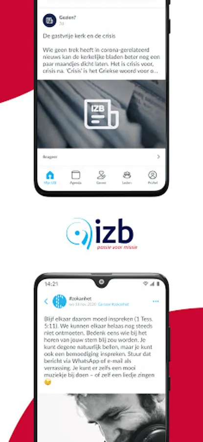 This app is made by the missionary organization IZB. You might know us from First This, the daily Bible podcast. Or from IZB-Focus, equipment programs for churches. Or from Areopagus, the support of pastors. Or Dabar, the missionary work on campsites. Nice to meet you: www.izb.nl.