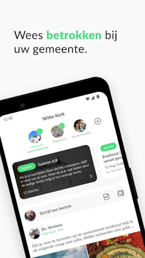 Thanks to our unique group structure, we help churches to communicate better. With the entire community, but also among themselves. You can add groups yourself and invite people to do so. A smart timeline ensures that every user sees personal and relevant information.