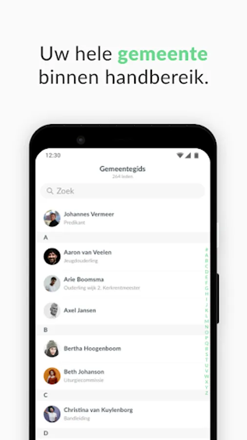 Who nowadays still looks up a telephone number in the telephone book? Hardly anyone! Thanks to the congregation guide feature, everyone within your congregation can be found. Sending messages quickly, navigating to an address, or seeing someone's role in the Church? The digital municipal guide makes it easy.