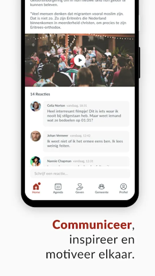 As a church we want to be involved with each other, efficiently maintain the organization of the church, support each other and much more. Our own mobile app helps us with this!