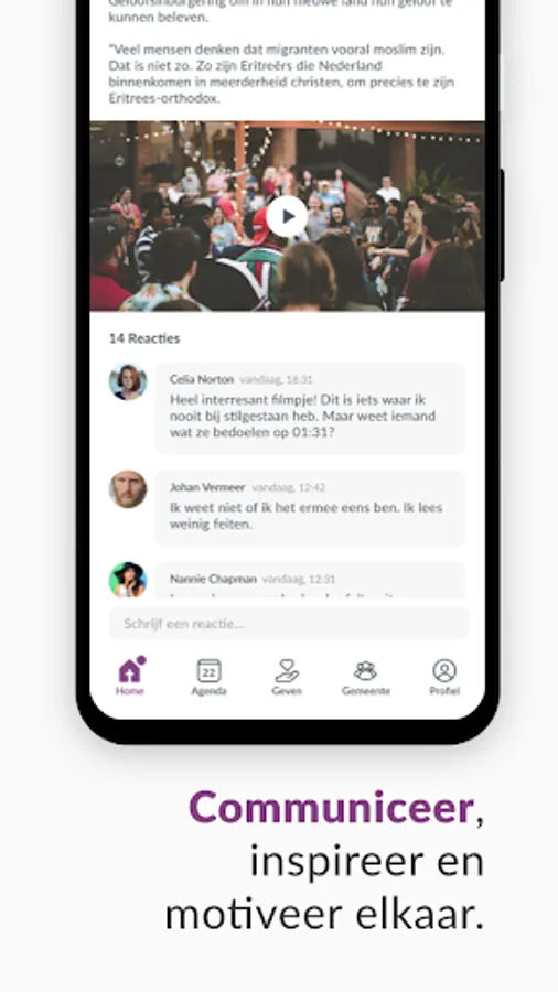 Thanks to our unique group structure, we help churches to communicate better. With the whole community, but also among themselves. You can add groups yourself and invite people to them. A smart timeline ensures that every user sees personal and relevant information.