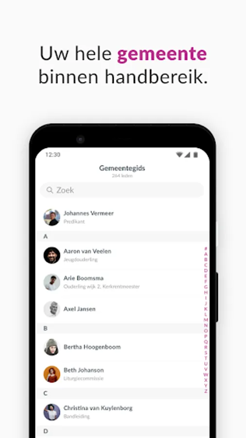 As a church we want to be involved with each other, efficiently maintain the organization of the church, support each other and much more. Our own mobile app helps us with this!