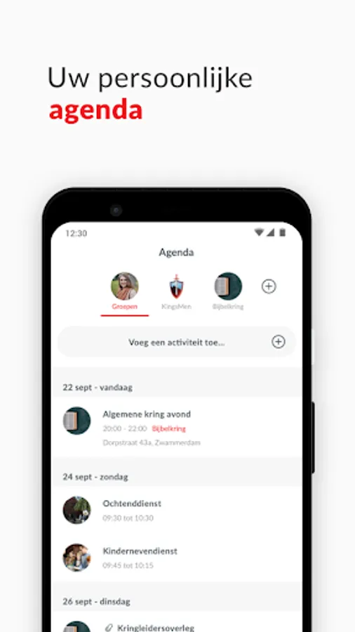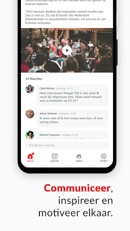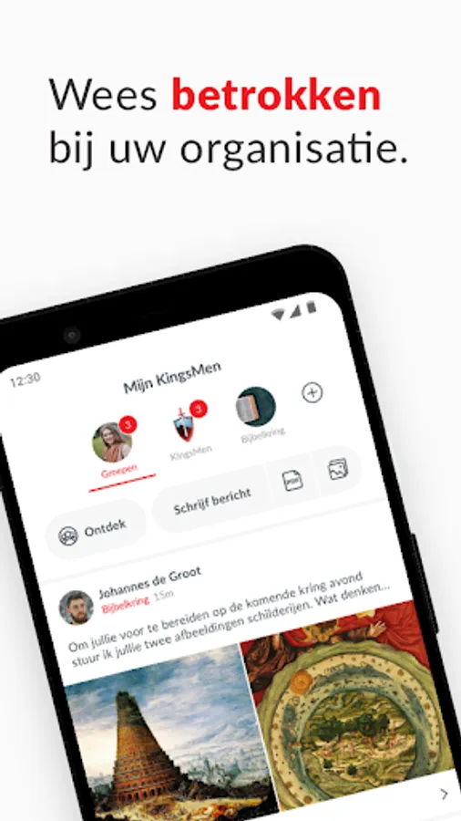 Thanks to our unique group structure, we can communicate better. With the entire community, but also among ourselves. You can add groups yourself and invite people to join. A smart timeline ensures that you see personal and relevant information.