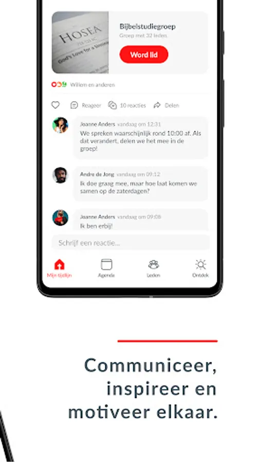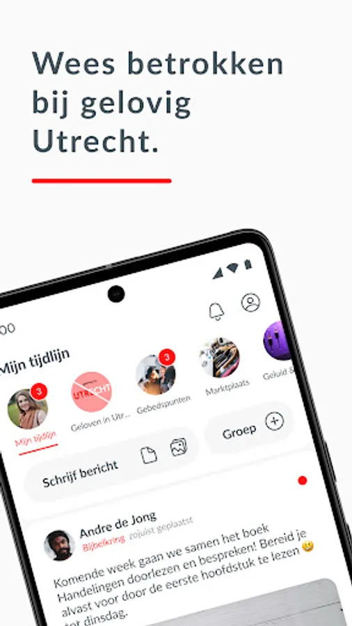 Thanks to our unique group structure, we can communicate better. With the entire community, but also among ourselves. You can add groups yourself and invite people to join. A smart timeline ensures that you see personal and relevant information.