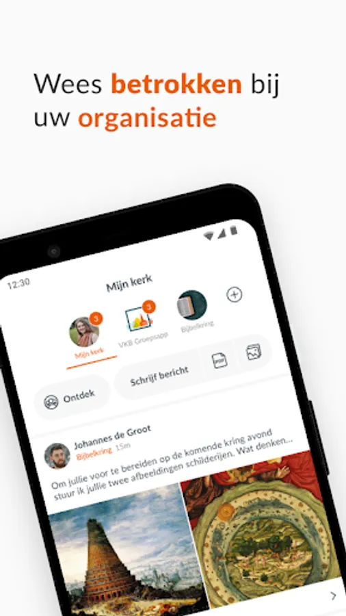 Thanks to our unique group structure, we help churches to communicate better. With the whole community, but also among themselves. You can add groups yourself and invite people to them. A smart timeline ensures that every user sees personal and relevant information.