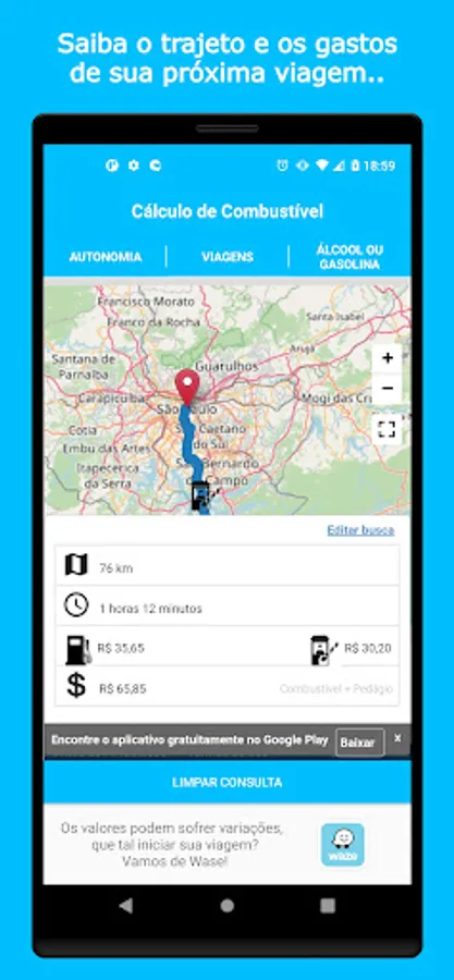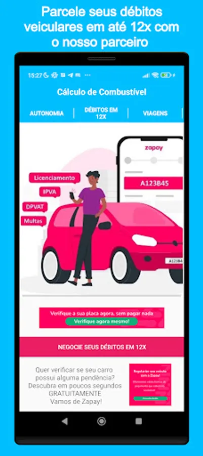 With this quick and practical application you will be able to calculate the autonomy of your vehicle, calculate the trip, check the distance between cities, toll values and expenses to carry out the route, including calculating which fuel is worth filling at the moment. We also have a partnership with Zapay so that you can check your license plate and vehicle charges and can pay in up to 12 installments with special conditions.
