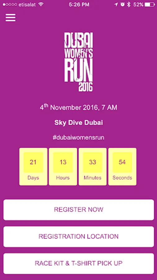 This App contains all the information needed about registration form and location as well as the course map. It also allows you to share pictures and to take a look at the Photowall.