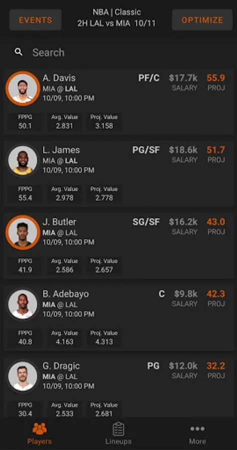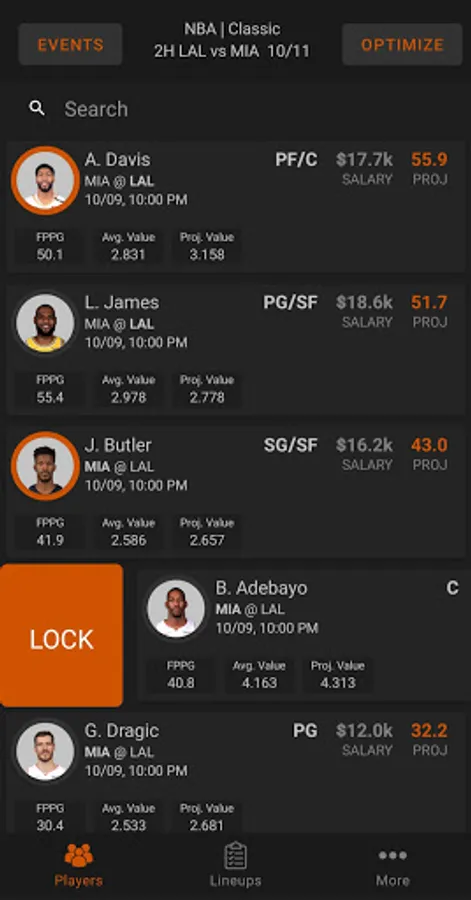 - Customize optimizer by locking/excluding players, setting max exposure, team stacking, avoid offense vs. defense, and more!