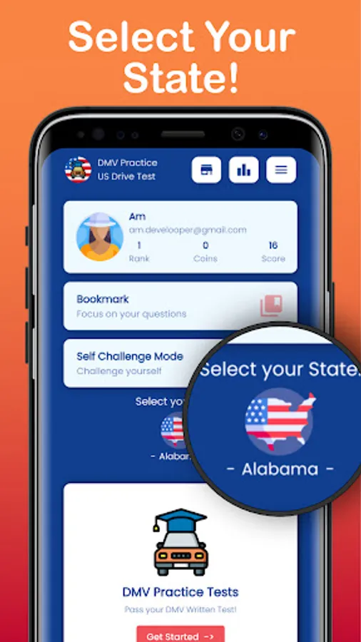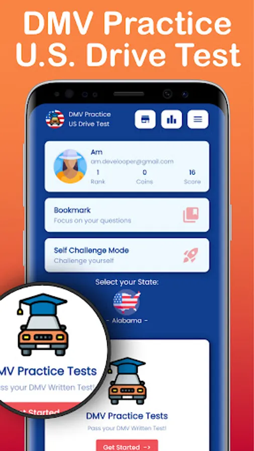 Our app to help you to successfully pass the DMV written test of your state on the first time.