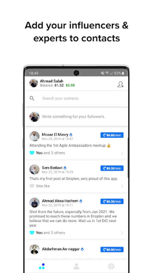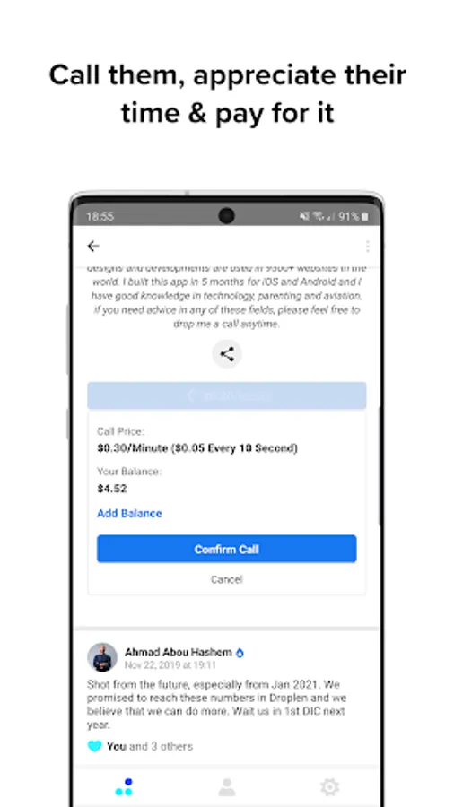 If you want to reach a pro users who offers you a great value and you want to appreciate their time, you can easily ask for their Droplen number to drop them paid call and guarantee being answered without wasting their time, or you can just send them a request to call you back so they can call in their free time.