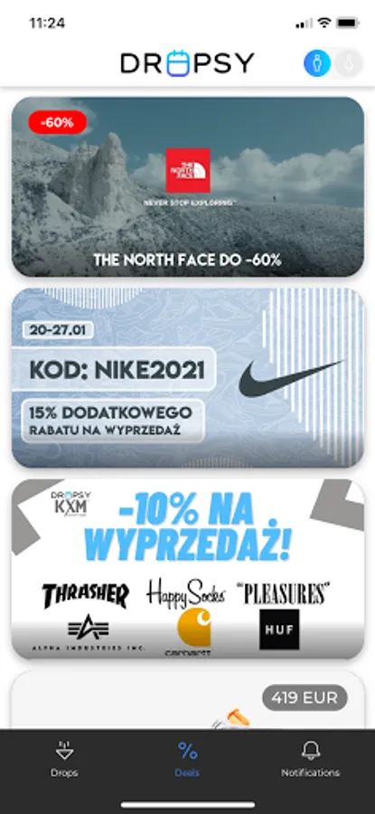 Dropsy serves as a center for all information about streetwear premieres and the best deals, in the form of a transparent and intuitive mobile app.
