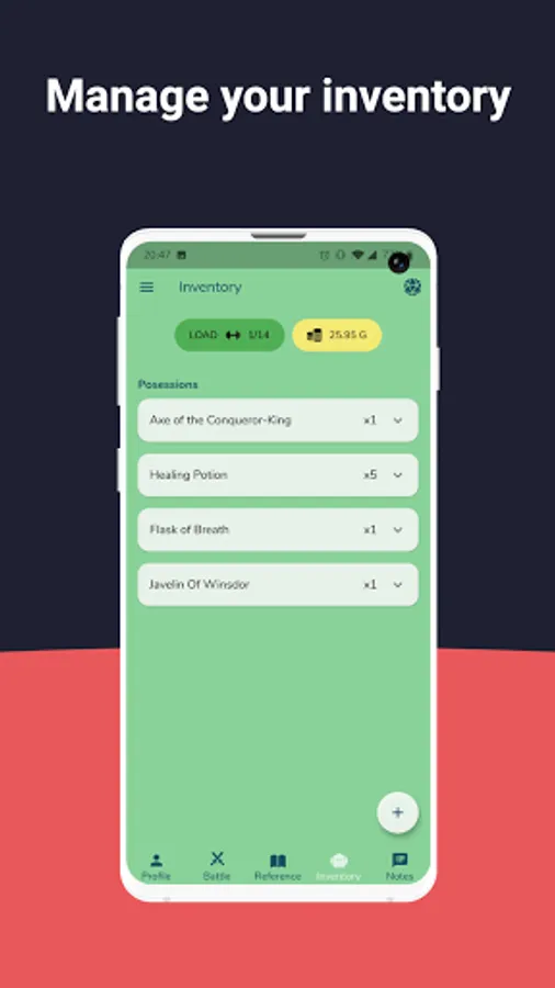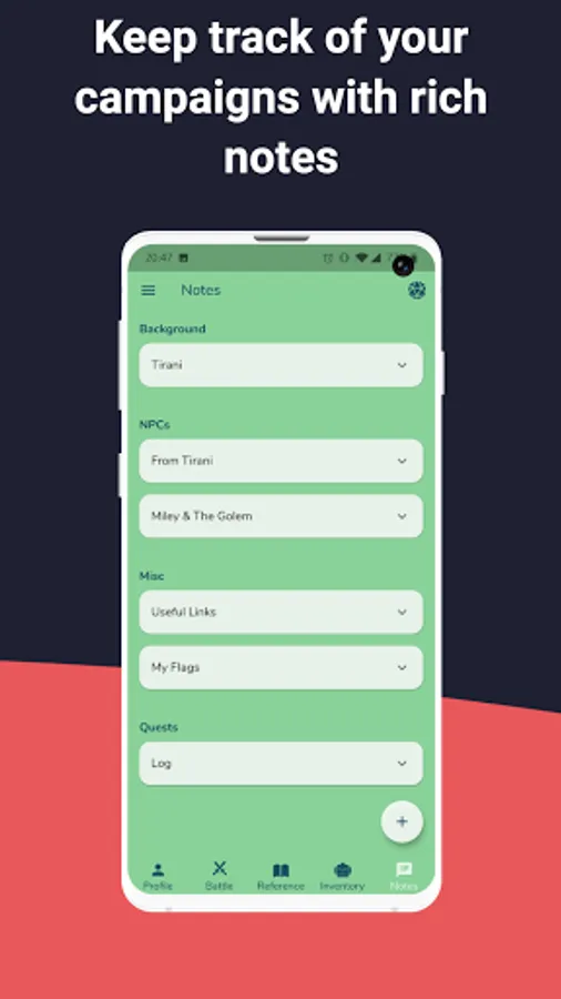 ★ Add notes and organize them into categories, to keep track of everything going on in your group's campaign and your character