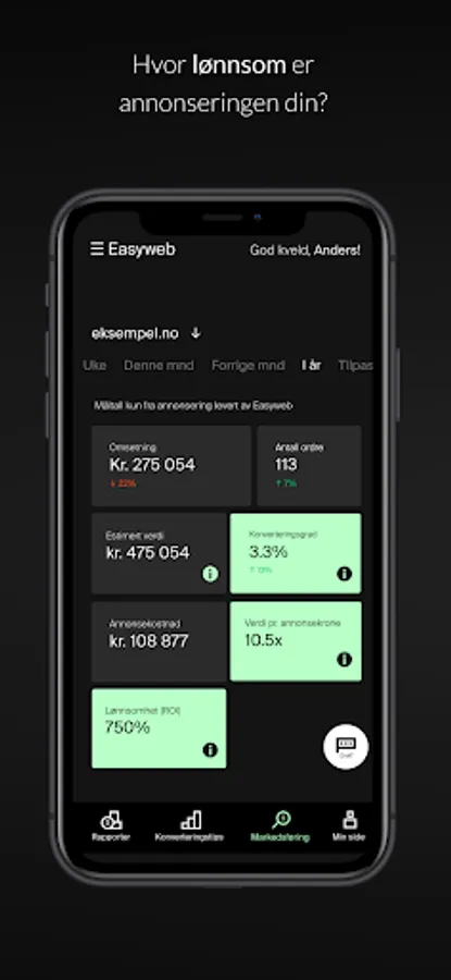 The Easyweb app is a tool that quickly and easily gives you an overview of how your website and marketing are performing. We have collected data from several platforms, tailored the reporting, and show you the key figures.