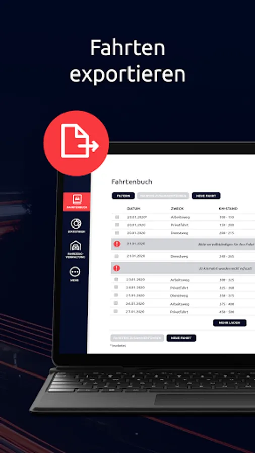 You can export your logbook as a PDF at any time and for freely selectable periods. For your tax return, to settle accounts with clients, or as a travel expense report, or simply for your documents.