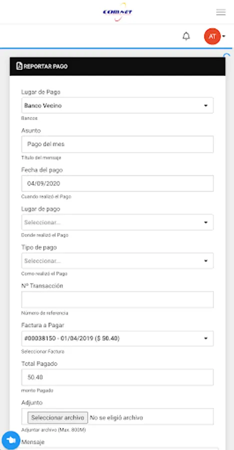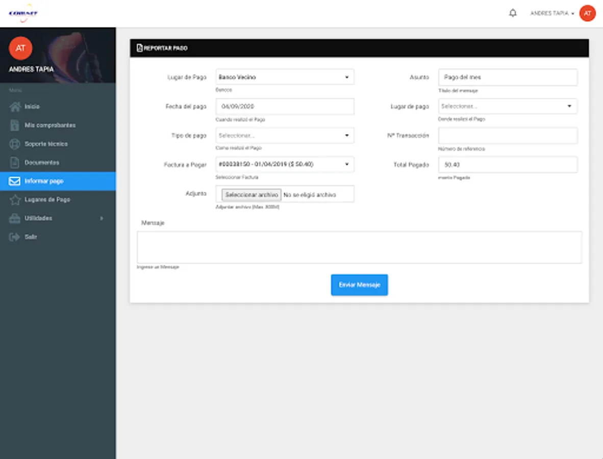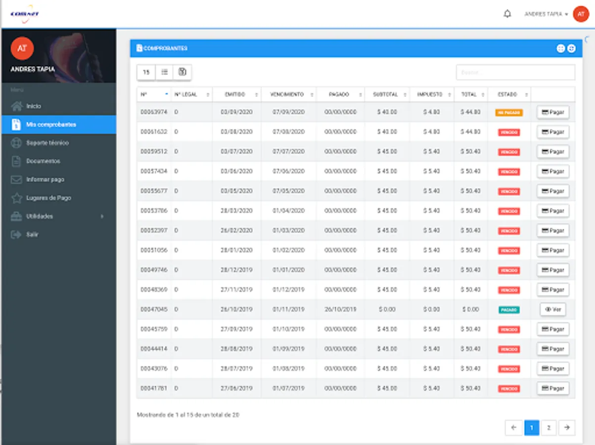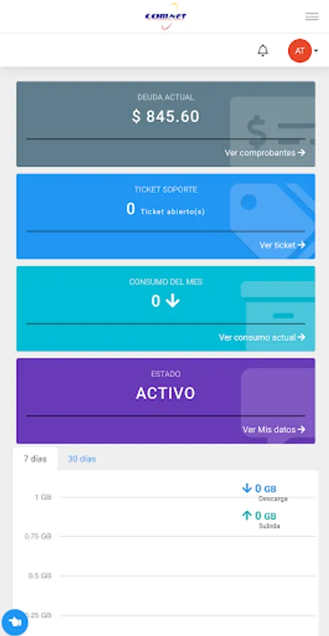Here you can review your payment vouchers, download your invoices, report problems on the network, view your internet consumption, Open support ticket, among other functions.
