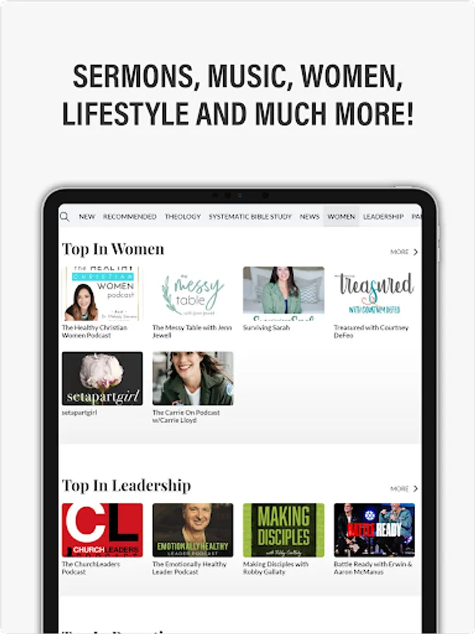 Whether you’re looking for your favorite Christian podcast or new Bible study podcasts, this Christian app is for you. You can access over 2,000,000 pieces of Christian audio content, including: Bible study podcasts, news podcasts, women podcasts, leadership podcasts, lifestyle podcasts, and music podcasts on your Android and Apple devices. Discover podcasts on various topics: