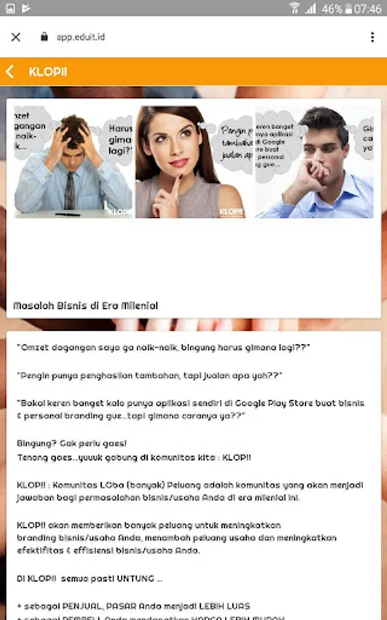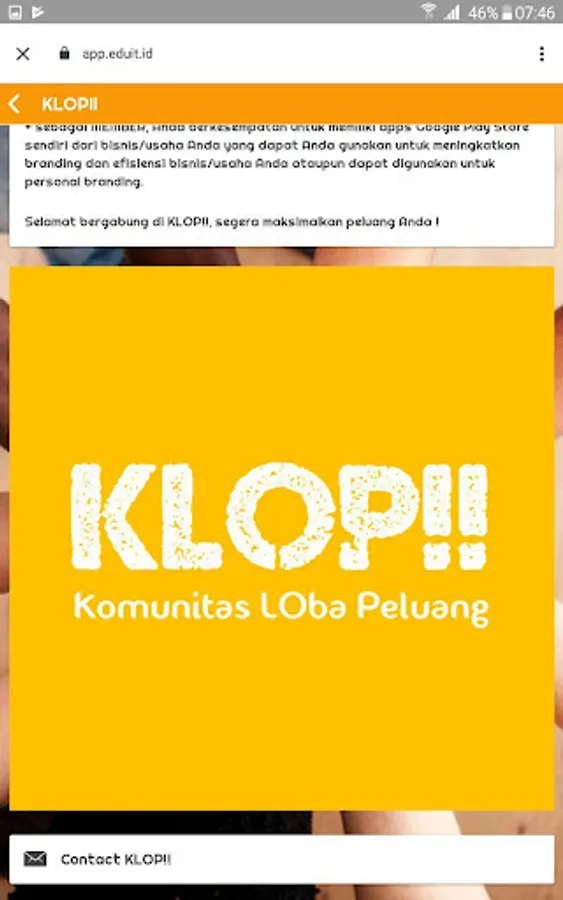 KLOP !! is an application that provides answers for entrepreneurs, MSMEs, influencers and all businesses to develop their business / business, increase opportunities and increase branding through personal apps on the Google Play Store