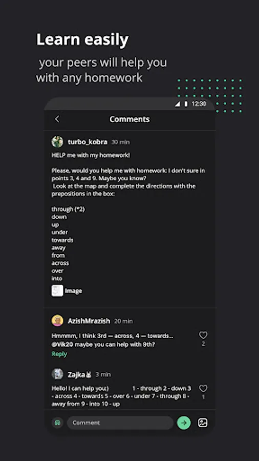 Learn from friends and peers what you like: dance, sing, solve math and other school subjects, talk! You can also make money by helping other guys and answering their questions.