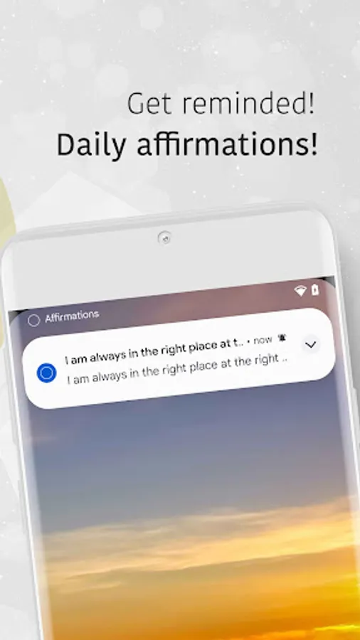 With our app, you'll have access to a wide variety of daily affirmations carefully crafted to help you overcome negative self-talk, boost your motivation and improve your overall well-being. Our affirmations cover a wide range of topics, including self-love, personal growth, gratitude, and inner peace.